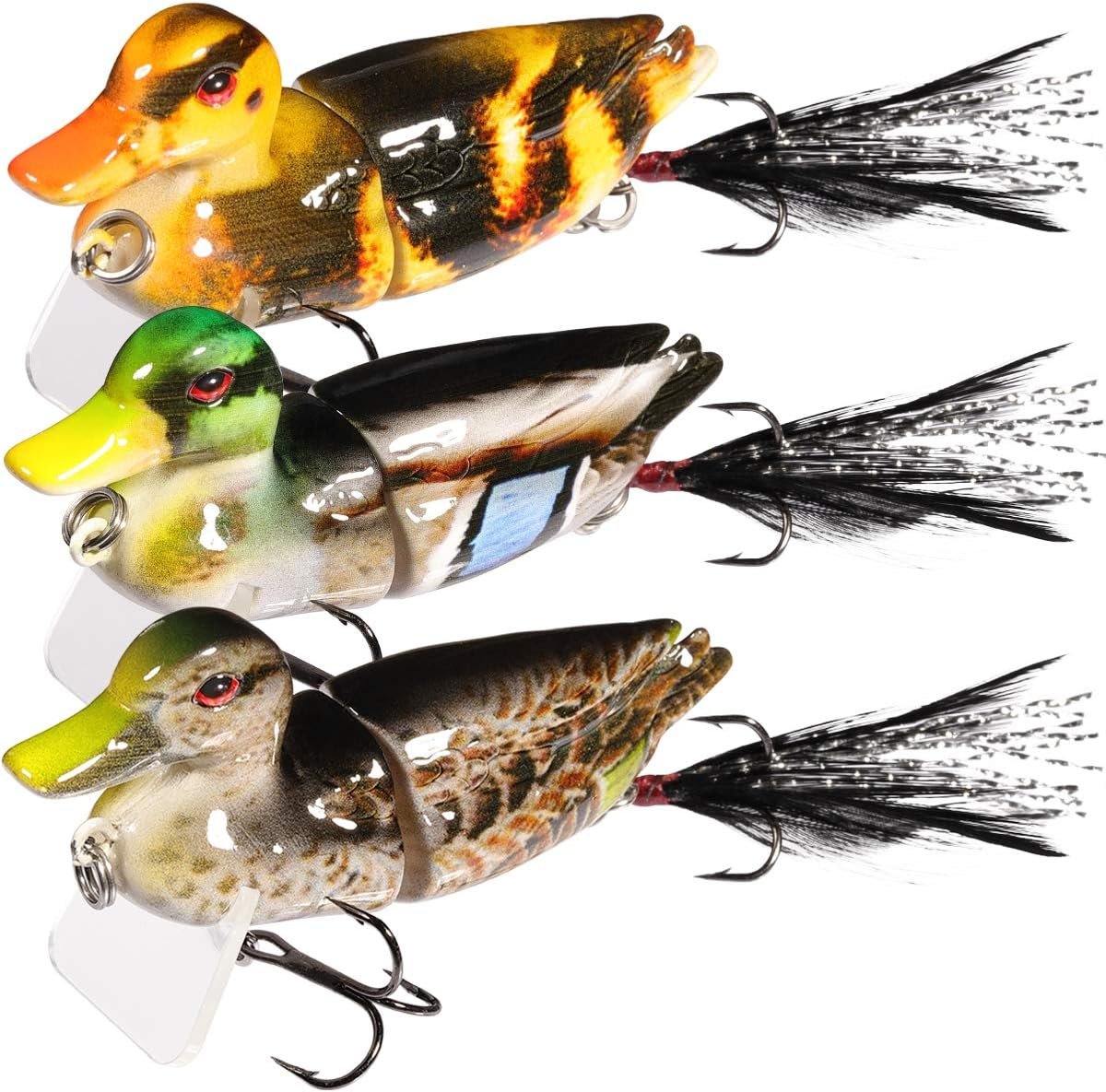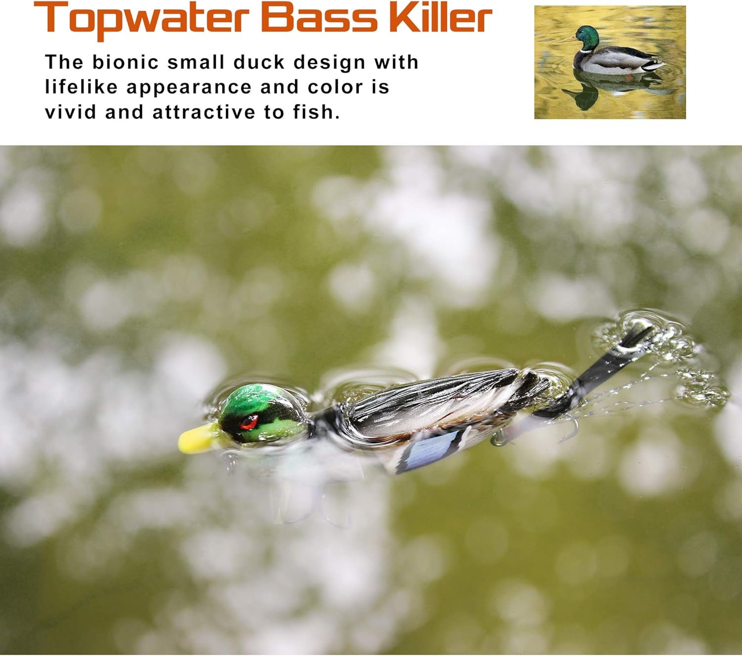 - REALISTIC DUCK LURES – Big Duck: Length:2.8in Weight:0.35oz. These bass lures are made to look like realistic fish moving through the water