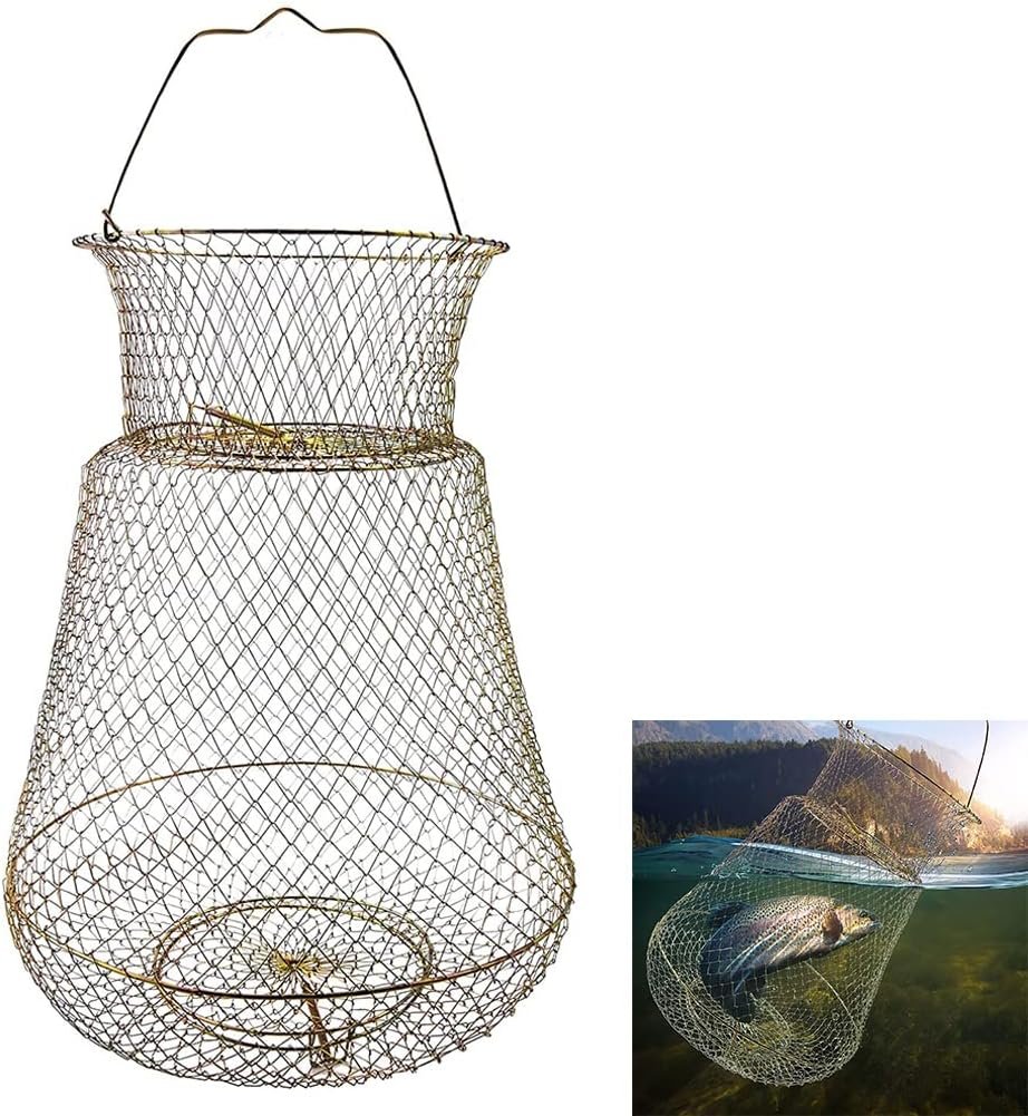 Steel Wire Fish Basket Galvanized, Collapsible Fish Crab Crawfish Basket, Metal Rustproof Fish Basket, Portable Fishing Basket Cage for Fish Outdoor